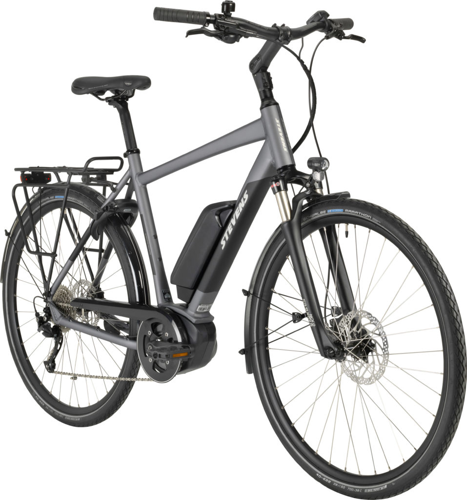 Ein fahrstabiler Rahmen mit Federgabel und Komfort-Geometrie. Zuverlässige Komponenten von der Shimano-Kettenschaltung bis zu hydraulischen Scheibenbremsen. Funktionelle Vollausstattung für Alltag und Wochenendausflüge. Wenn Sie bis dato noch alleine pedalieren mussten, macht Ihnen das neue E-Molveno den Wechsel aufs Motor-unterstützte Pedelec besonders leicht – und das zu einem unglaublich attraktiven Einstandspreis.